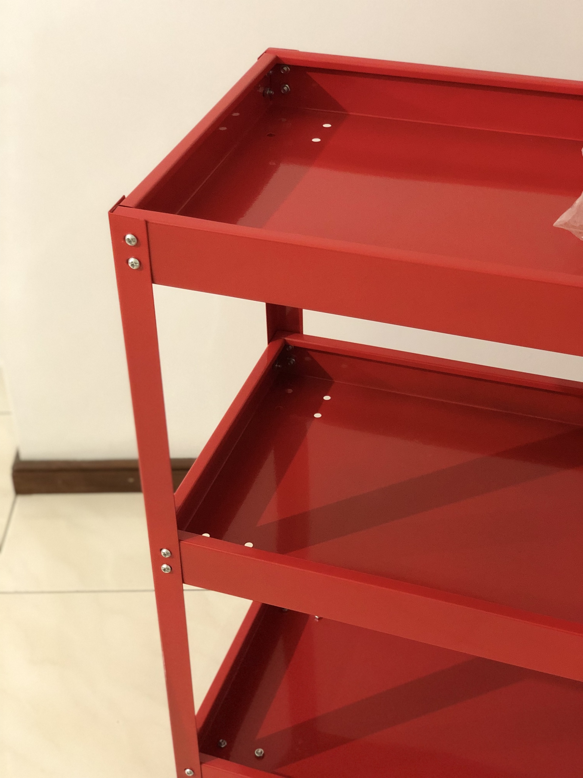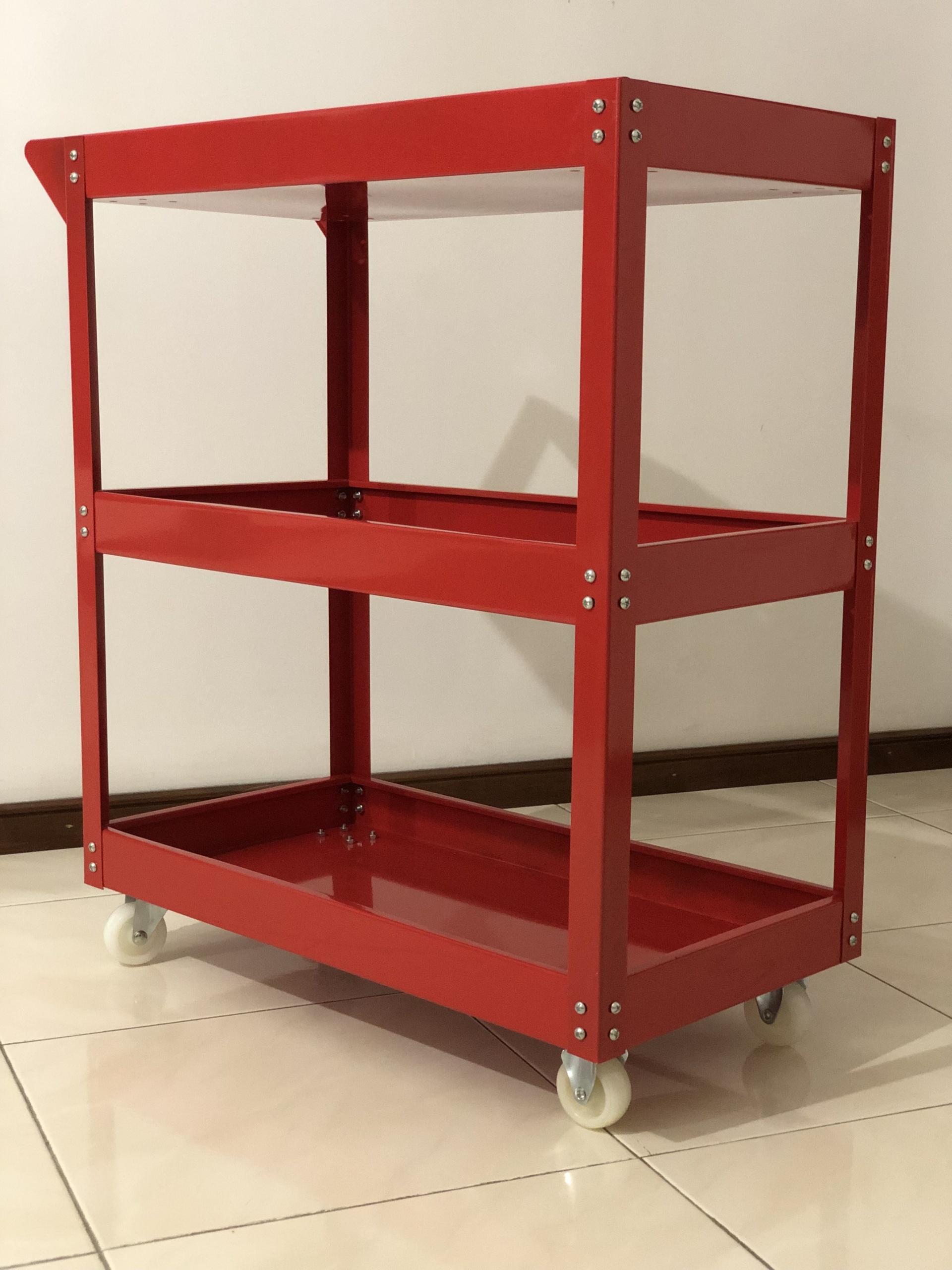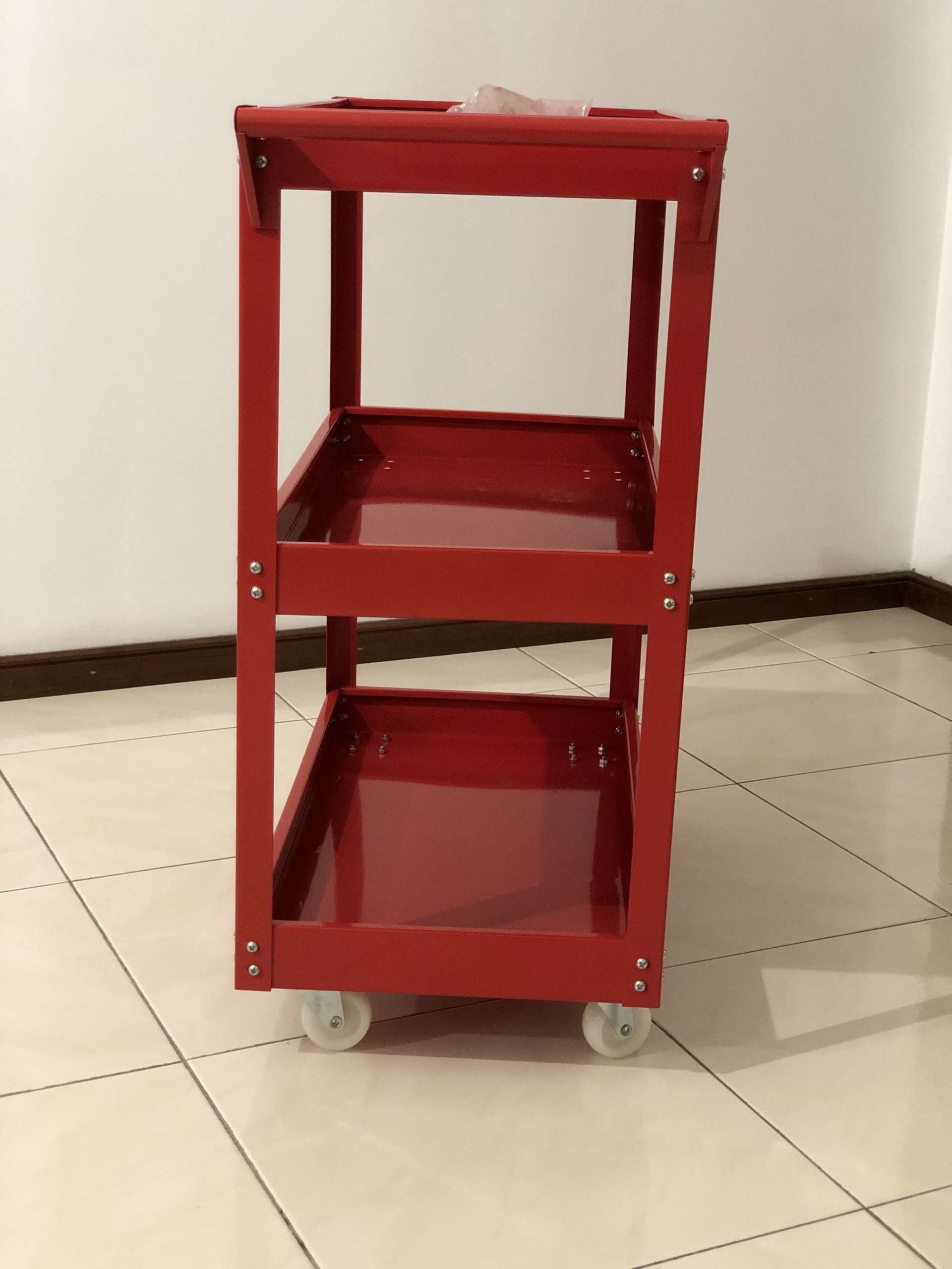 Carrinho de ferramentas de oficina de 3 andares com rodas de montagem.