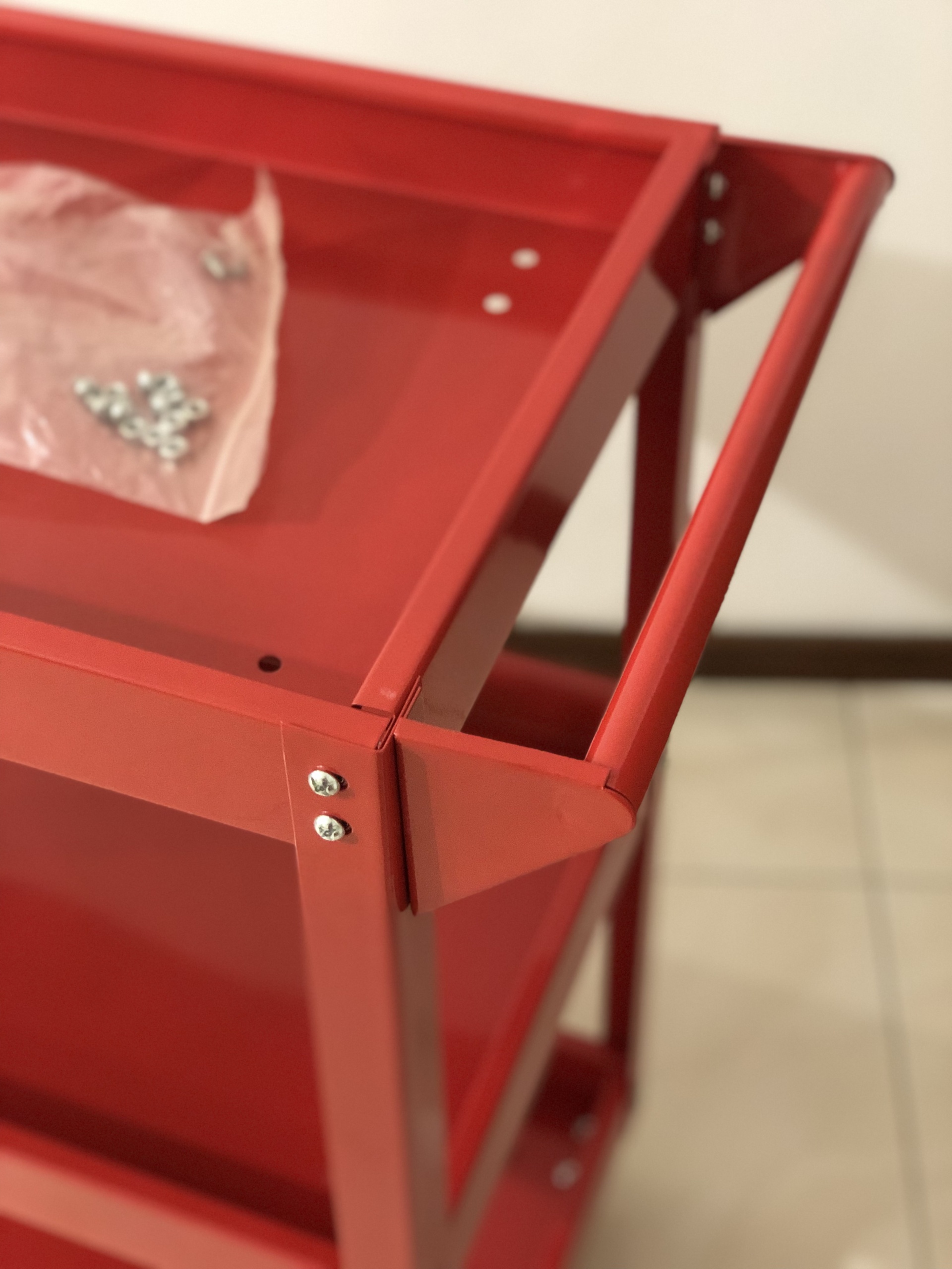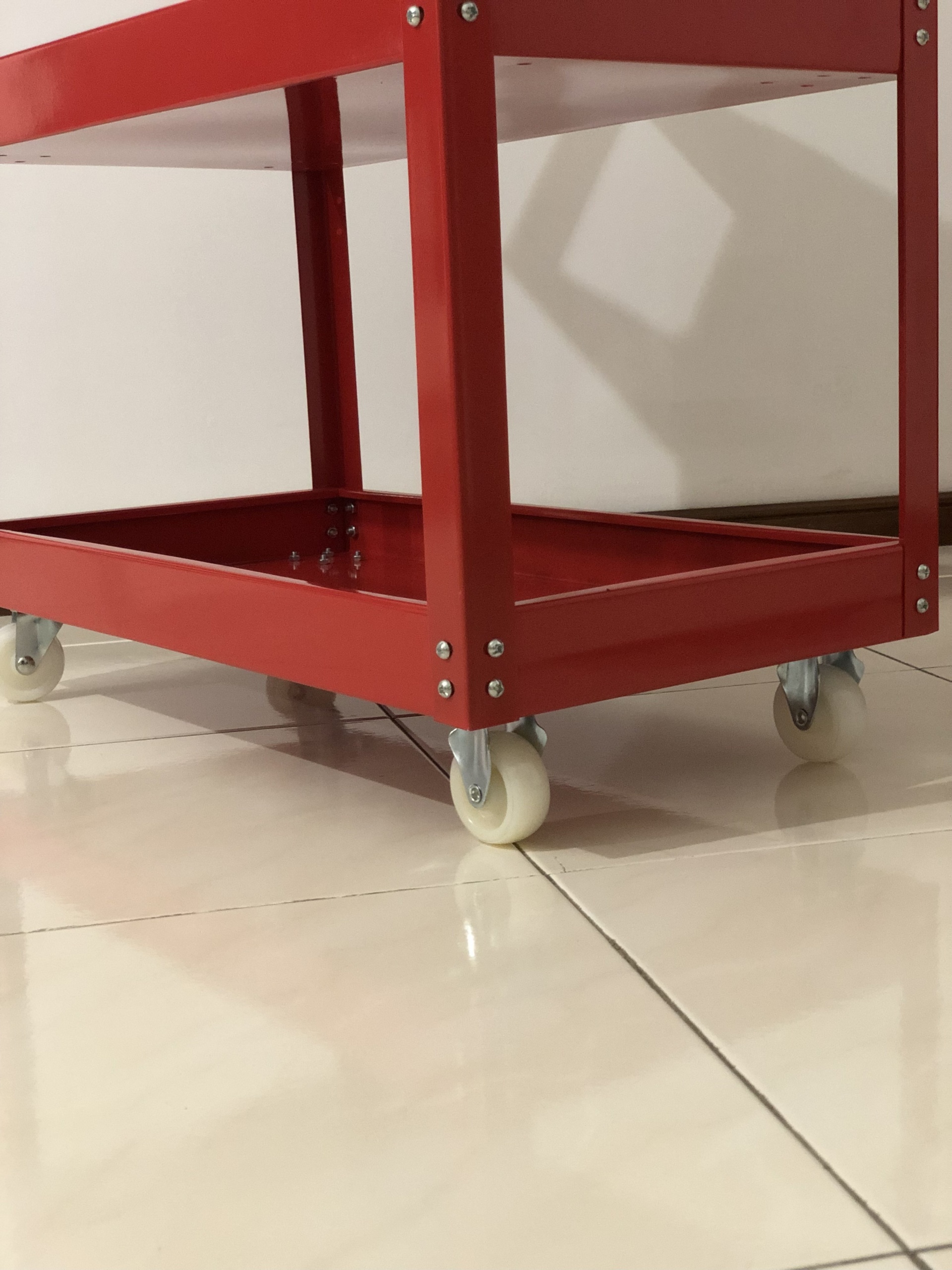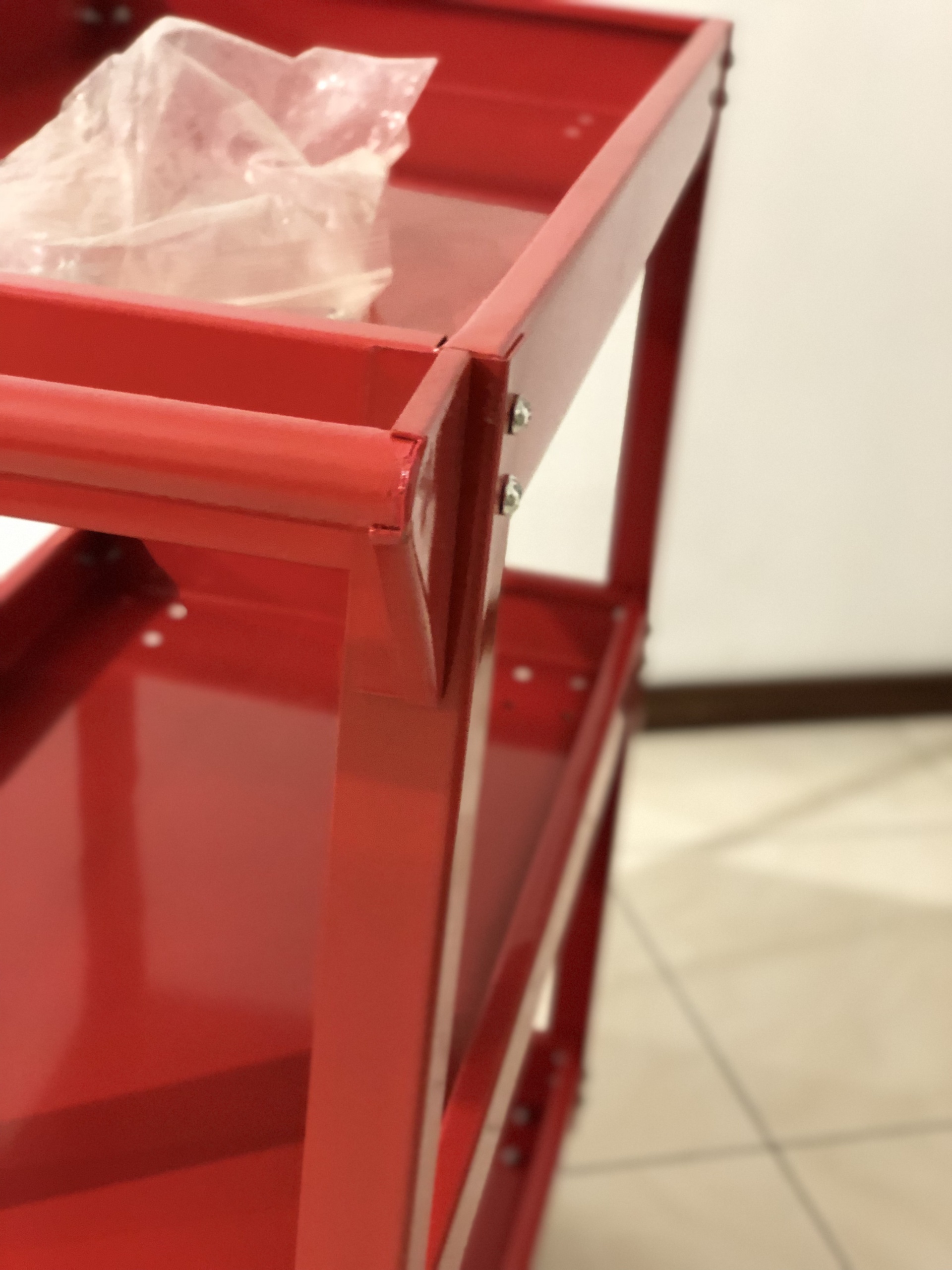 Carrinho de ferramentas de oficina de 3 andares com rodas de montagem.