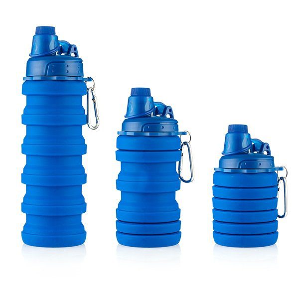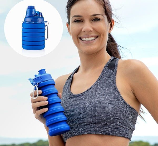 Esta garrafa reutilizável é adequada para bebidas quentes e frias, é fácil de desdobrar e tem capacidade para 500 ml.