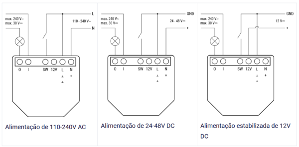 Módulo interruptor para automação WiFi 110/240VAC 12VDC 24-48VDC – 16A – Shelly 1 Gen3
